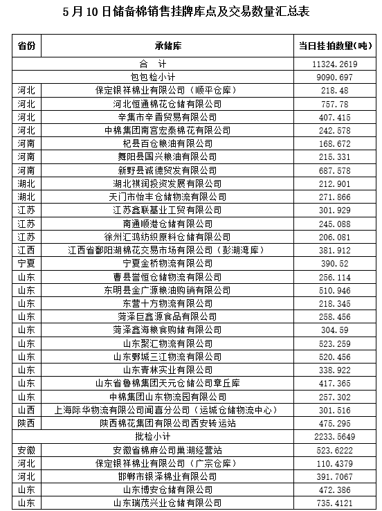 附件:1.5月10日上市銷(xiāo)售儲(chǔ)備棉數(shù)據(jù)明細(xì)表(包包檢)