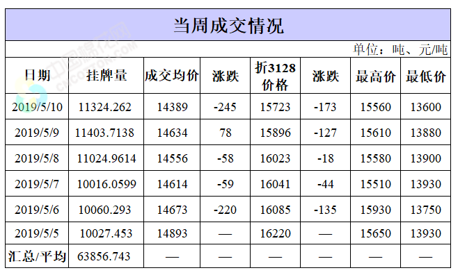截至5月10日累計輪出銷售資源6.4萬噸,成交最高價15930元/噸,最低價13600元/噸。