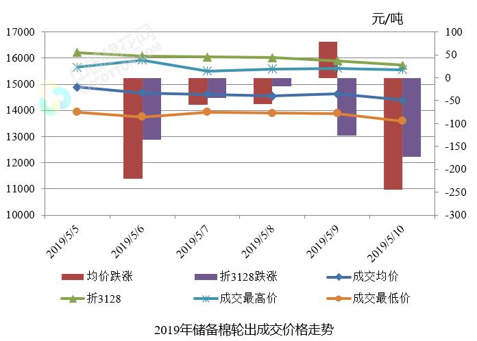本周(2019年5月5-10日)是2019年中央儲備棉輪出第一周,中國儲備棉管理有限公司掛牌儲備棉6.39萬噸,其中新疆棉3.03萬噸,地產(chǎn)棉3.36萬噸。