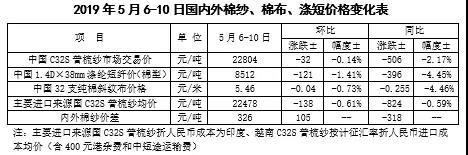 本周,國內(nèi)外棉價(jià)紛紛下跌;國內(nèi)棉紗價(jià)格繼續(xù)小幅下跌,外紗價(jià)格由穩(wěn)轉(zhuǎn)弱;滌綸短纖價(jià)格續(xù)跌。
