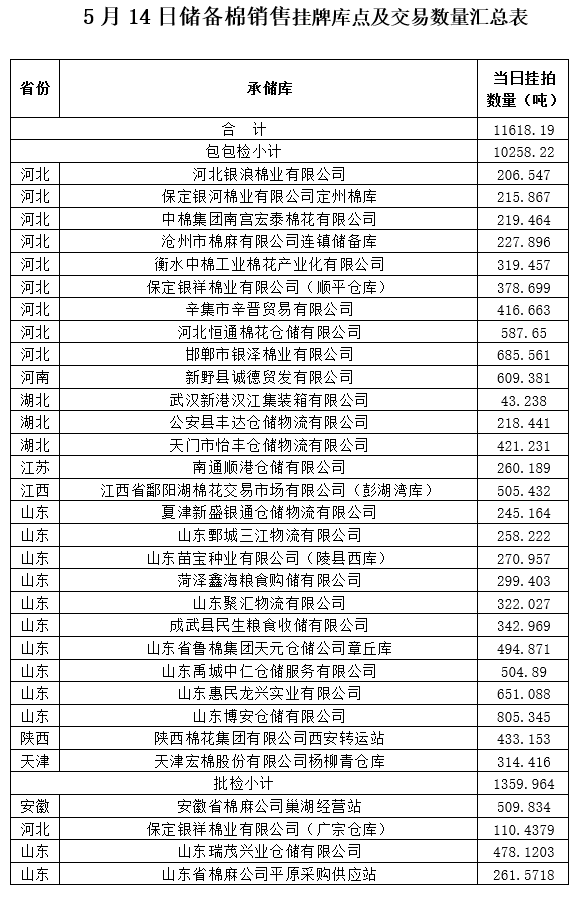 附件:1.5月14日上市銷售儲備棉數(shù)據(jù)明細(xì)表(包包檢)