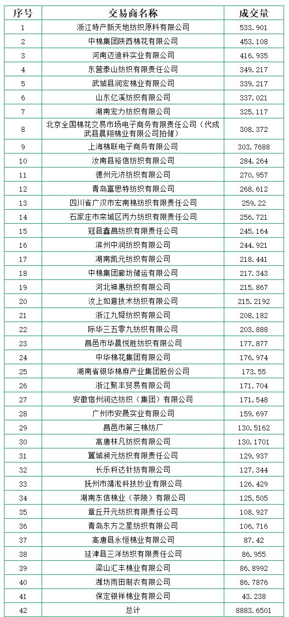 新疆棉成交均價(jià)13800元/噸,新疆棉折3128價(jià)格15047元/噸,加價(jià)幅度575元/噸。