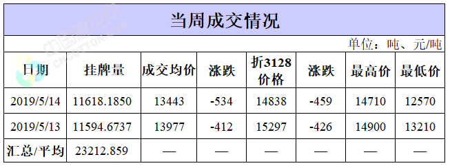 截至5月14日累計(jì)輪出銷售資源8.7萬噸,成交最高價(jià)15930元/噸,最低價(jià)12570元/噸。