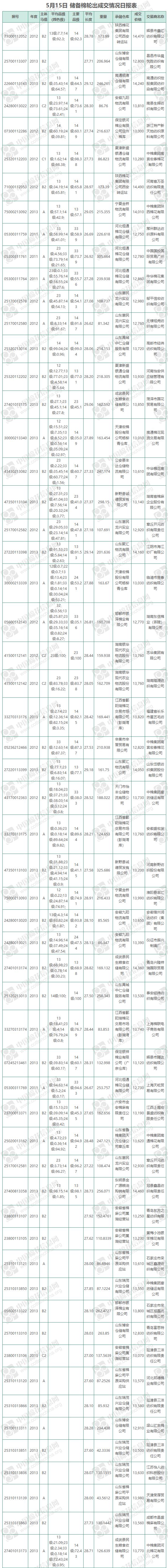 5月15日儲備棉輪出銷售資源11389.4049噸,實際成交9851.3647噸,成交率86.50%,成交均價13464元/噸,較14日上漲21元/噸;折3128價格14888元/噸,較14日上漲50元/噸。