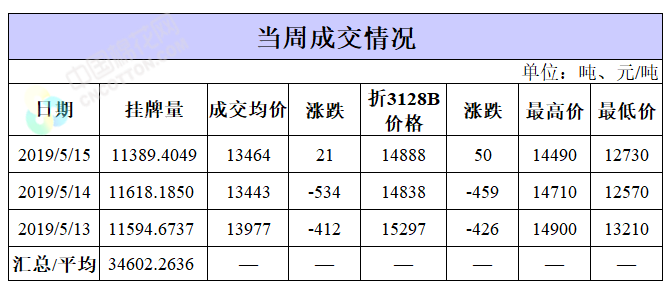 截至5月15日累計輪出銷售資源9.85萬噸,成交最高價15930元/噸,最低價12570元/噸。