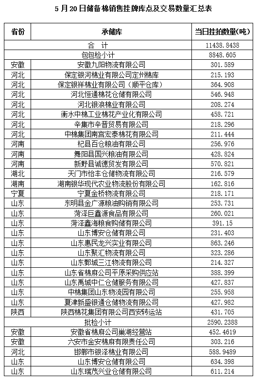 附件:1.5月20日上市銷售儲(chǔ)備棉數(shù)據(jù)明細(xì)表(包包檢)