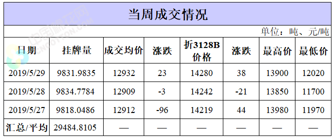 截至5月29日累計輪出銷售資源20.33萬噸,成交最高價15930元/噸,成交最低價11700元/噸。