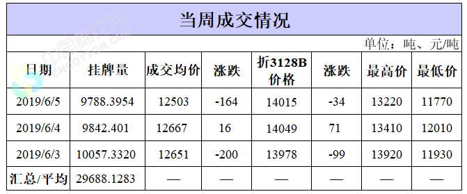 截至6月5日累計(jì)輪出銷售資源25.27萬噸,成交最高價(jià)15930元/噸,成交最低價(jià)11700元/噸。
