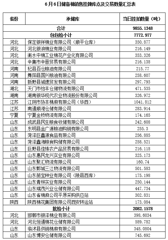 附件:1.6月6日上市銷售儲備棉數(shù)據(jù)明細(xì)表(包包檢)