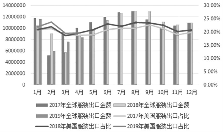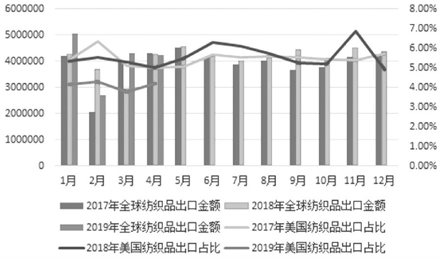 2019年5月10日起,美國政府宣布對從中國進口的2000億美元清單商品加征的關(guān)稅稅率由10%提高到25%。若后期中美經(jīng)貿(mào)關(guān)系繼續(xù)惡化,或?qū)⒄鞫惙秶鷶U大到3250億美元,且征稅范圍幾乎覆蓋我國全部對美出口的紡織服裝產(chǎn)品。隨著征稅規(guī)模的擴大,貿(mào)易戰(zhàn)或?qū)ξ覈徔椘芳胺b出口造成實際影響。