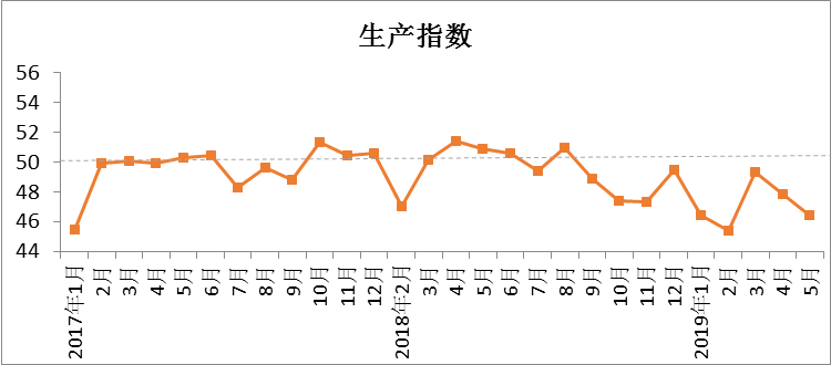 5月生產(chǎn)指數(shù)46.4,與4月相比下降1.41。根據(jù)中棉行協(xié)調研了解,5月紡織企業(yè)設備開臺率均有不同程度的下降,在南方個別地區(qū),牛仔布生產(chǎn)企業(yè)的漿染生產(chǎn)線開臺率不足,出現(xiàn)了旺季的“清冷”現(xiàn)象,某針織工業(yè)園5月工業(yè)用電量和蒸汽使用量較去年同期均有所下降,河南、江西、湖北、四川、新疆等省地部分紡織企業(yè)出現(xiàn)限產(chǎn)現(xiàn)象。跟蹤企業(yè)數(shù)據(jù)顯示,5月紗產(chǎn)量環(huán)比下降3.36%,布產(chǎn)量環(huán)比下降0.07%。其中,純棉紗和純棉布產(chǎn)量下降較為明顯。走訪企業(yè)表示,由于訂單縮減,加上正值麥收季節(jié),因此企業(yè)選擇延長端午假期,也有企業(yè)通過增加排班讓工人輪休工作。因此,預計6月生產(chǎn)指數(shù)大概率維持下降。