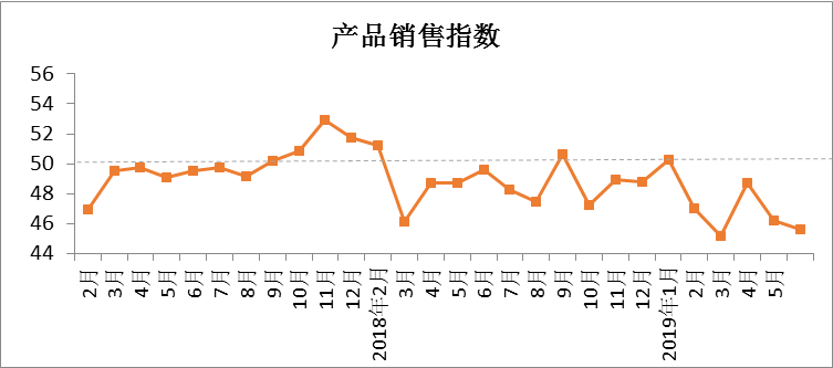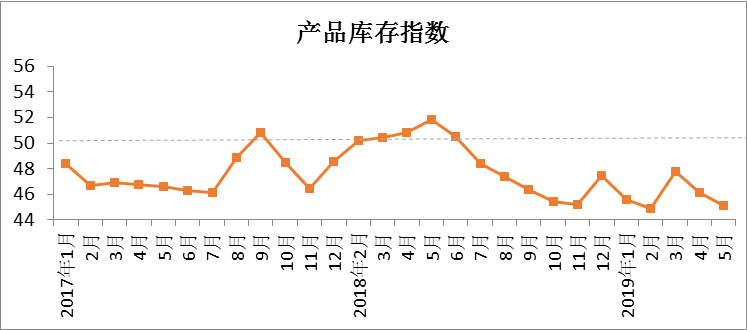 5月產(chǎn)品銷售指數(shù)45.58,與4月相比下降0.65。中美貿易摩擦加劇了下游市場的悲觀情緒,產(chǎn)業(yè)鏈各環(huán)節(jié)均持觀望態(tài)度,不敢下單。國外市場也受到波及,美國訂單向東南亞轉移,歐盟、日韓等采購商也放緩下單并趁機壓價,紗布價格不斷下跌。與常規(guī)產(chǎn)品相比,差別化產(chǎn)品附加值相對較高,客源較為穩(wěn)定,但市場份額有限,不足于帶動整個市場回暖。5月,32支純棉普梳紗平均價格為22413元/噸,環(huán)比下降516元/噸,純棉坯布(32*32130*702/147"斜紋)平均價格為5.43元/米,環(huán)比下降0.15元/米。跟蹤企業(yè)數(shù)據(jù)顯示,5月紗銷量環(huán)比下降2.66%,布銷量環(huán)比下降13.96%。目前,紡紗企業(yè)不斷下調報價,讓利促銷,但詢單問價不多,成交不佳,需求端表現(xiàn)仍差強人意,預計6月產(chǎn)品銷售指數(shù)繼續(xù)走低。