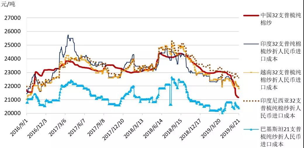 三、國(guó)內(nèi)外棉紗價(jià)格跌勢(shì)略有放緩