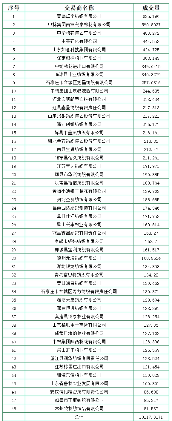 新疆棉成交均價(jià)13167元/噸,新疆棉折3128價(jià)格14196元/噸,新疆棉加價(jià)幅度681元/噸。