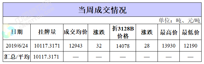 截至6月24日累計(jì)輪出銷售資源37.10萬噸,成交最高價(jià)15930元/噸,成交最低價(jià)11530元/噸。