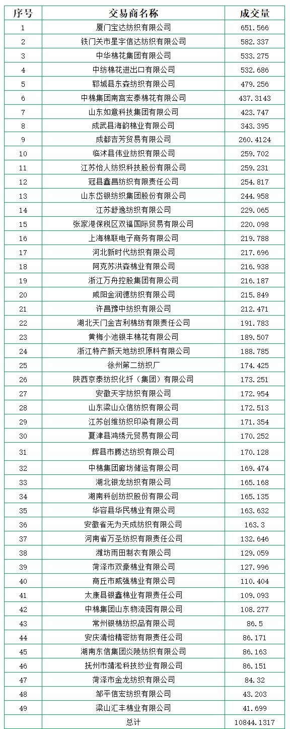新疆棉成交均價13217元/噸,新疆棉折3128價格14435元/噸,新疆棉加價幅度920元/噸。