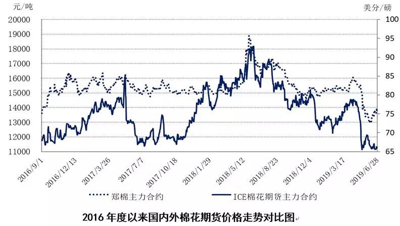 國(guó)際棉花市場(chǎng)短期盼暖,未來(lái)曲折繼續(xù)。中美貿(mào)易談判重啟,意味著中美貿(mào)易摩擦的長(zhǎng)期和曲折性繼續(xù),同時(shí)美國(guó)貿(mào)易保護(hù)政策也正在向發(fā)展中國(guó)家蔓延。近期特朗普取消對(duì)印度關(guān)稅優(yōu)惠措施,同時(shí)要求印度撤回本月實(shí)施的對(duì)美報(bào)復(fù)性關(guān)稅,并暗示正考慮對(duì)越南加征關(guān)稅,將影響全球棉紡織產(chǎn)業(yè)格局變化。國(guó)際棉花市場(chǎng)方面,美國(guó)農(nóng)業(yè)部最新報(bào)告顯示,2019年度美國(guó)棉花實(shí)播面積為1372萬(wàn)畝,同比減少2.7%,較3月意向面積減少6萬(wàn)英畝,該報(bào)告再次為美棉銷售和ICE提供短期發(fā)揮空間。但其他主產(chǎn)國(guó)棉花播種收獲相對(duì)理想,印度季風(fēng)雨改善,巴基斯坦官方表示供水情況改善,南半球巴西新棉迎來(lái)收獲。USDA全球產(chǎn)需報(bào)告預(yù)計(jì)2019/20年度全球棉花產(chǎn)大于需1萬(wàn)噸。豐產(chǎn)預(yù)期和消費(fèi)承壓下,現(xiàn)貨市場(chǎng)并不急于采購(gòu),上周下年度美棉簽約銳減,中國(guó)繼續(xù)毀約。國(guó)際棉紗市場(chǎng)仍在觀望貿(mào)易形勢(shì)。中美貿(mào)易談判重啟消息提振短期市場(chǎng)情緒,同時(shí)隨貿(mào)易談判的反復(fù)和持久性,使國(guó)際棉價(jià)再次走上曲折道路。