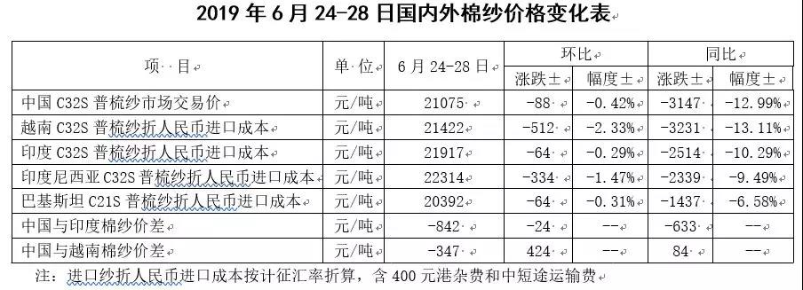 三、國(guó)內(nèi)外棉紗價(jià)格延續(xù)下跌態(tài)勢(shì)