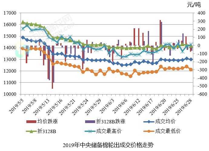 上周(2019年6月24-28日)是2019年中央儲備棉輪出第八周,中國儲備棉管理有限公司累計掛牌儲備棉5.38萬噸,其中新疆棉2.94萬噸,地產(chǎn)棉2.44萬噸。