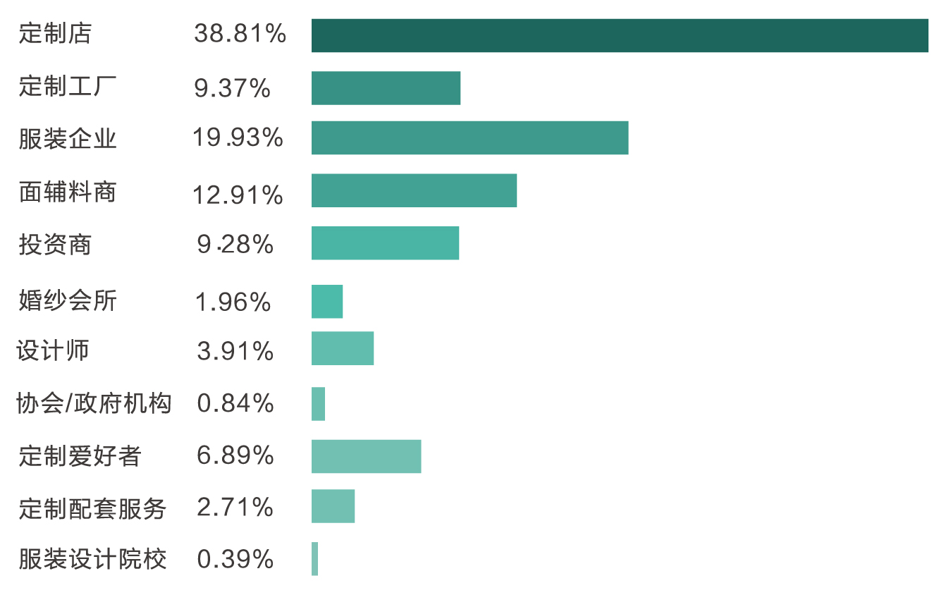 最終,2019年4月19-21日TCE服裝定制展完成了26291位專業(yè)觀眾的駐足,實(shí)現(xiàn)“史詩級”的逆襲,據(jù)數(shù)據(jù)統(tǒng)計觀眾占比情況如下: