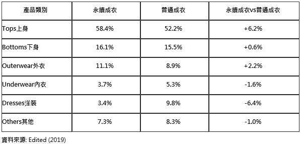 表3:按類別劃分的產(chǎn)品組合–永續(xù)成衣與普通成衣(2016-2018)