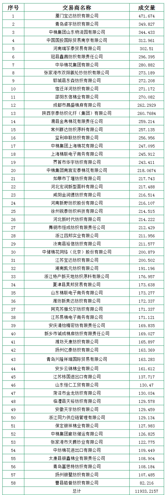 新疆棉成交均價(jià)13205元/噸,新疆棉折3128價(jià)格14528元/噸,新疆棉加價(jià)幅度1036元/噸。