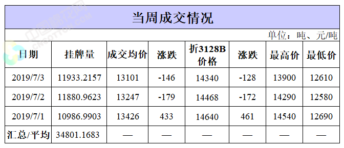 截至7月3日累計(jì)輪出銷售資源44.95萬噸,成交最高價(jià)15930元/噸,成交最低價(jià)11530元/噸。