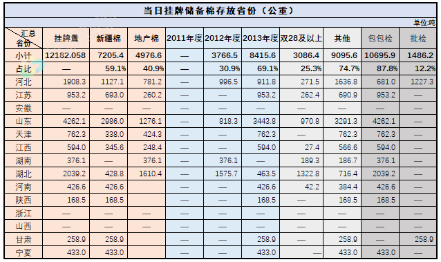 2.當日輪出上市儲備棉中有部分為分批抽樣公檢。抽樣比率及抽樣方法按照棉花國家標準規(guī)定,品質指標包括顏色級、軋工質量、長度、馬克隆值、斷裂比強度、長度整齊度指標;重量采用原入庫公檢結果,不再重新檢驗。