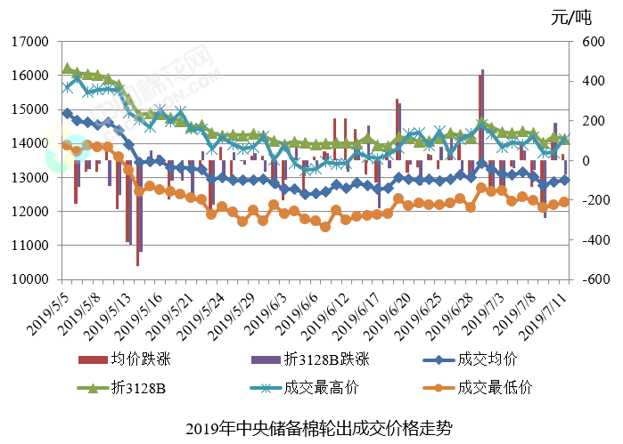 上周(2019年7月8-12日)是2019年中央儲備棉輪出第十周,中國儲備棉管理有限公司累計掛牌儲備棉6.07萬噸,其中新疆棉3.61萬噸,地產(chǎn)棉2.46萬噸。