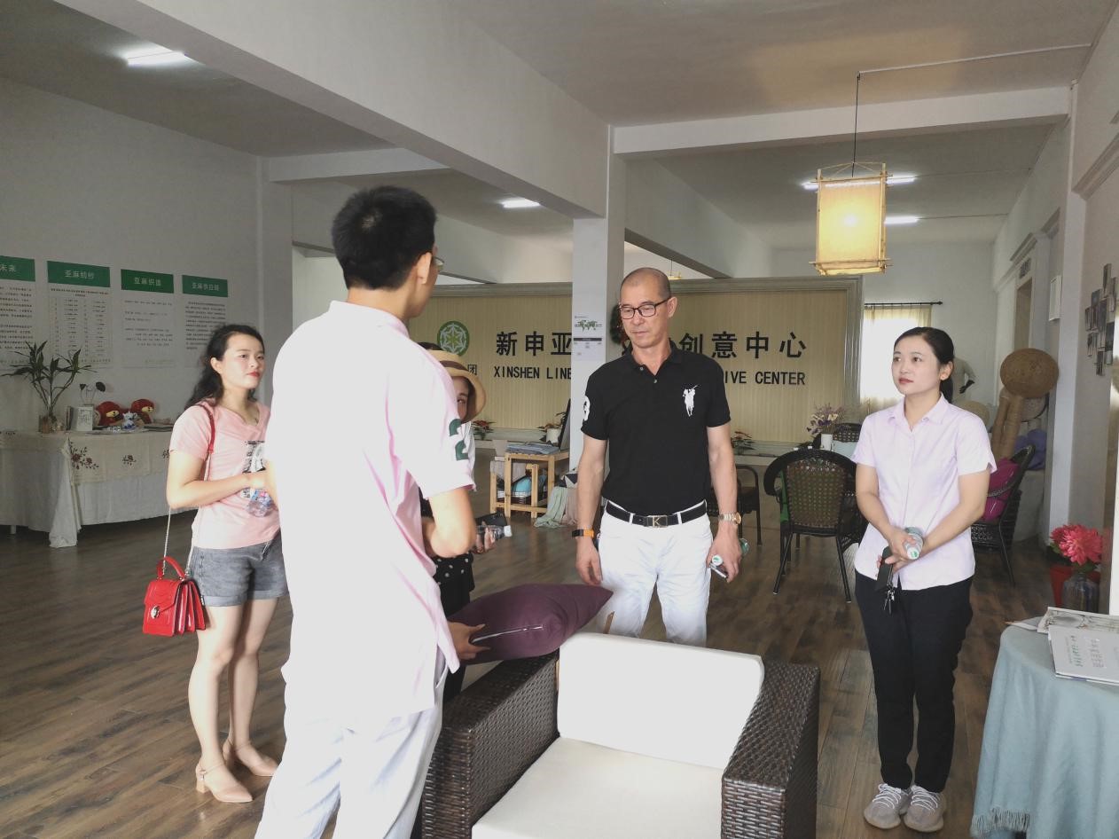 在新申集團(tuán)李建峰的陪同下,申總一行參觀了新申亞麻體驗(yàn)中心、文化傳播中心等。在體驗(yàn)中心里,各色亞麻面料制成的家居家紡產(chǎn)品,男女老幼亞麻服裝,箱包鞋帽,亞麻裝飾品等,展現(xiàn)了衣、食、住、行全覆蓋的健康亞麻生活方式。新申集團(tuán)對(duì)于各領(lǐng)域面料開發(fā)之細(xì)、專、精,面料款式之新、多、時(shí)尚,令參觀者一行交口稱贊。