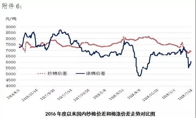 國內(nèi)棉價低位運行。國家統(tǒng)計局數(shù)據(jù)顯示,我國上半年GDP增長6.3%,保持了總體平穩(wěn)、穩(wěn)中有進的發(fā)展態(tài)勢,下年度外部環(huán)境可能比較復(fù)雜的,國內(nèi)還有下行壓力,外貿(mào)占GDP比重下降,經(jīng)濟增長越來越依靠內(nèi)需來拉動。國內(nèi)棉花市場方面,現(xiàn)貨市場銷售依然清淡,據(jù)監(jiān)測系統(tǒng)數(shù)據(jù)顯示,截至7月19日,本年度全國新棉銷售進度為76.9%,同比下降9.1個百分點,產(chǎn)量按610.5萬噸測算,全國尚有約141萬噸新棉待售;倉單棉繼續(xù)流向現(xiàn)貨市場,上周鄭棉倉單大幅減少3.6萬噸至58.4萬噸;本年度儲備棉累計計劃出庫58.99萬噸,近一個月來成交率有所回升,預(yù)計7月底我國工商業(yè)庫存475萬噸左右,較同期增加97萬噸左右,供應(yīng)端整體仍顯充裕。6月份中美貿(mào)易形勢緩和帶來的市場短暫好轉(zhuǎn)未能延續(xù),隨著鄭棉大跌,下游棉紗市場再次走淡,紗、布庫存仍處高位,據(jù)監(jiān)測系統(tǒng)數(shù)據(jù)顯示,7月初,被抽樣調(diào)查企業(yè)紗庫存29.1天,比近三年同期平均水平高14.8天;布庫存在49.2天,高于近三年同期平均10.5天。經(jīng)過中美貿(mào)易談判的反復(fù)磋商,市場普遍認為中美貿(mào)易戰(zhàn)將是一個長期而艱巨的過程。目前影響行情主要體現(xiàn)在需求和心理層面,大部分企業(yè)為穩(wěn)定資金鏈,保證員工不流失,以縮量生產(chǎn),謹慎觀望為主。短期內(nèi)國內(nèi)棉價可能將延續(xù)低位運行。除了中美貿(mào)易談判進程,市場還需要關(guān)注后續(xù)天氣和季節(jié)性訂單因素變化。