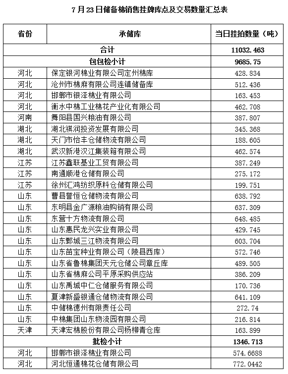 附件:1.7月23日上市銷售儲(chǔ)備棉數(shù)據(jù)明細(xì)表(包包檢)
