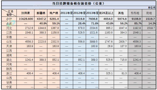 2.當(dāng)日輪出上市儲備棉中有部分為分批抽樣公檢。抽樣比率及抽樣方法按照棉花國家標(biāo)準(zhǔn)規(guī)定,品質(zhì)指標(biāo)包括顏色級、軋工質(zhì)量、長度、馬克隆值、斷裂比強(qiáng)度、長度整齊度指標(biāo);重量采用原入庫公檢結(jié)果,不再重新檢驗。