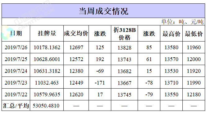 截至7月26日累計輪出銷售資源64.29萬噸,成交最高價15930元/噸,成交最低價11530元/噸。