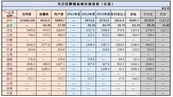 2.當(dāng)日輪出上市儲(chǔ)備棉中有部分為分批抽樣公檢。抽樣比率及抽樣方法按照棉花國家標(biāo)準(zhǔn)規(guī)定,品質(zhì)指標(biāo)包括顏色級(jí)、軋工質(zhì)量、長度、馬克隆值、斷裂比強(qiáng)度、長度整齊度指標(biāo);重量采用原入庫公檢結(jié)果,不再重新檢驗(yàn)。
