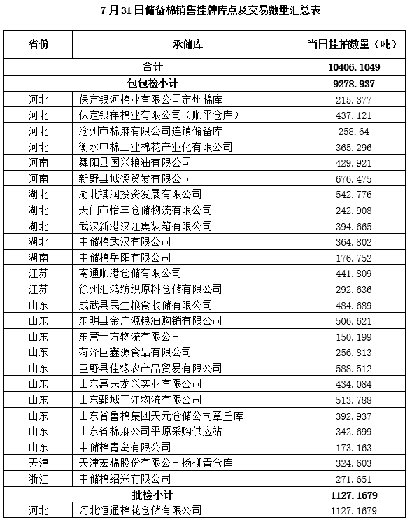 附件:1.7月31日上市銷售儲(chǔ)備棉數(shù)據(jù)明細(xì)表(包包檢)