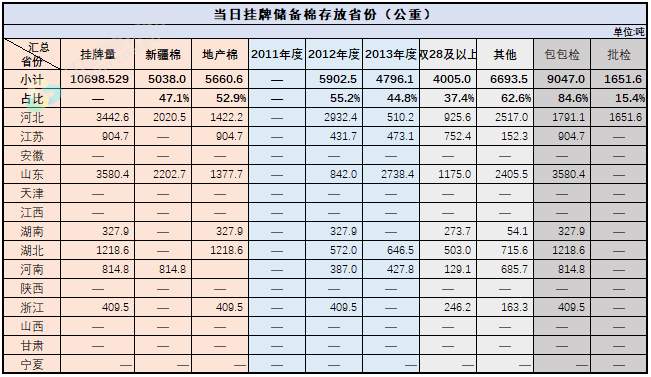 2.當日輪出上市儲備棉中有部分為分批抽樣公檢。抽樣比率及抽樣方法按照棉花國家標準規(guī)定,品質(zhì)指標包括顏色級、軋工質(zhì)量、長度、馬克隆值、斷裂比強度、長度整齊度指標;重量采用原入庫公檢結(jié)果,不再重新檢驗。