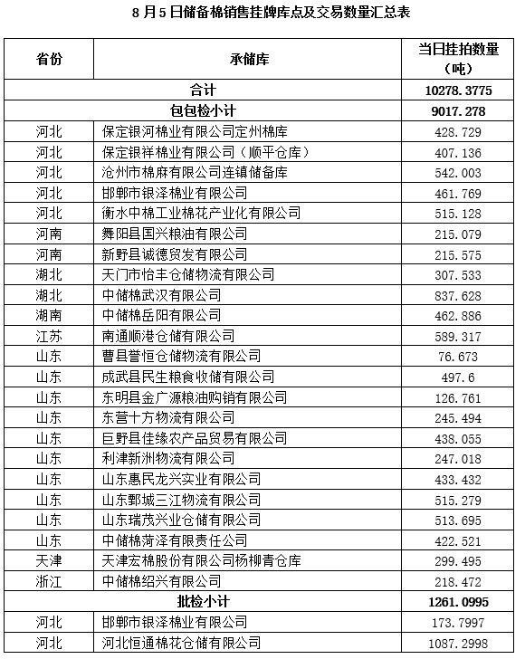 附件:1.8月5日上市銷售儲(chǔ)備棉數(shù)據(jù)明細(xì)表(包包檢)