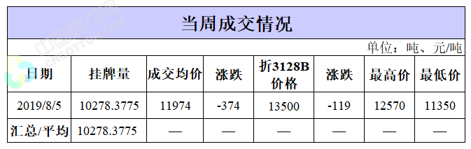 截至8月5日累計輪出銷售資源70.67萬噸,成交最高價15930元/噸,成交最低價11350元/噸。