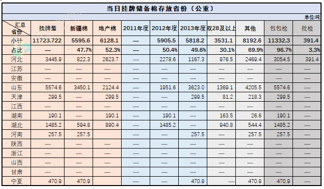 2.當(dāng)日輪出上市儲備棉中有部分為分批抽樣公檢。抽樣比率及抽樣方法按照棉花國家標(biāo)準(zhǔn)規(guī)定,品質(zhì)指標(biāo)包括顏色級、軋工質(zhì)量、長度、馬克隆值、斷裂比強度、長度整齊度指標(biāo);重量采用原入庫公檢結(jié)果,不再重新檢驗。