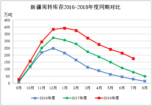截至7月底新疆區(qū)內(nèi)43家倉庫商品棉周轉(zhuǎn)庫存177.17萬噸,環(huán)比減少39.03萬噸,同比仍高96.93萬噸。