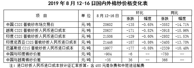 三、國(guó)內(nèi)外棉紗價(jià)格繼續(xù)下跌