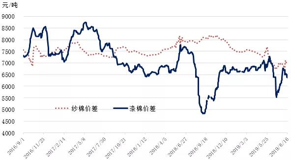國(guó)內(nèi)棉價(jià)繼續(xù)承壓弱勢(shì)運(yùn)行。隨著國(guó)際環(huán)境復(fù)雜嚴(yán)峻和國(guó)內(nèi)經(jīng)濟(jì)下行壓力加大,紡織工業(yè)和消費(fèi)回落,7月規(guī)模以上紡織工業(yè)增加值同比增長(zhǎng)1.2%,較6月份回落0.4個(gè)百分點(diǎn),服裝鞋帽、針紡織品類(lèi)額同比增長(zhǎng)2.9%,較6月回落2.3個(gè)百分點(diǎn)。國(guó)內(nèi)棉花市場(chǎng)方面,據(jù)國(guó)家棉花市場(chǎng)監(jiān)測(cè)系統(tǒng)數(shù)據(jù)顯示,截至2019年8月16日,2018/19年度全國(guó)棉花銷(xiāo)售率為81.6%,同比下降11個(gè)百分點(diǎn),全國(guó)尚有約112.3萬(wàn)噸新棉待售(產(chǎn)量610.5萬(wàn)噸),鄭棉倉(cāng)單49萬(wàn)噸,較前周下降2.5萬(wàn)噸,較上年同期多7.3萬(wàn)噸;2018/19年度還剩不足1個(gè)月,按每月消費(fèi)量66.5萬(wàn)噸測(cè)算,當(dāng)前供過(guò)于求局面明顯。9月初新棉采摘開(kāi)始,季節(jié)性供應(yīng)隨即增加。目前棉企還貸期限將至,不排除棉企讓利拋庫(kù)情況。下游紡織市場(chǎng)仍無(wú)起色,產(chǎn)成品庫(kù)存仍處高位,大部分織廠(chǎng)秋冬季訂單不及去年,原料備貨不積極,據(jù)國(guó)家棉花市場(chǎng)監(jiān)測(cè)系統(tǒng)調(diào)查數(shù)據(jù)顯示,8月初被抽樣調(diào)查企業(yè)紗、布產(chǎn)銷(xiāo)率分別比近3年同期平均水平低3.2、5.5個(gè)百分點(diǎn);庫(kù)存分別比近3年同期平均水平高12.4天、11.4天。隨著中美貿(mào)易局勢(shì)反復(fù)發(fā)酵,市場(chǎng)情緒階段性波動(dòng),對(duì)紡織服裝出口前景整體持悲觀(guān)態(tài)度,棉花行情可能繼續(xù)承壓弱勢(shì)運(yùn)行。