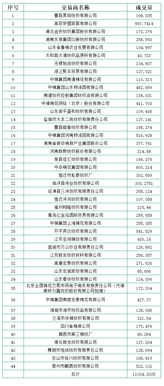 新疆棉成交均價12058元/噸,新疆棉折3128價格13323元/噸,新疆棉加價幅度644元/噸。