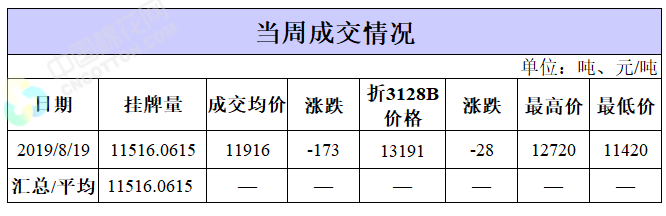 截至8月19日累計輪出銷售資源81.35萬噸,成交最高價15930元/噸,成交最低價11290元/噸。