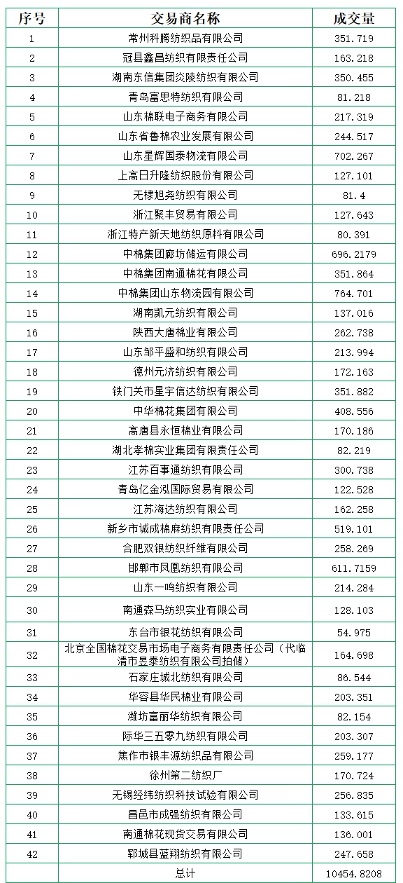 新疆棉成交均價(jià)11878元/噸,新疆棉折3128價(jià)格13268元/噸,新疆棉加價(jià)幅度589元/噸。