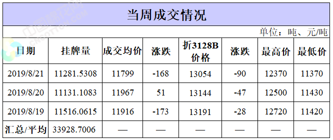 截至8月21日累計(jì)輪出銷(xiāo)售資源83.59萬(wàn)噸,成交最高價(jià)15930元/噸,成交最低價(jià)11290元/噸。