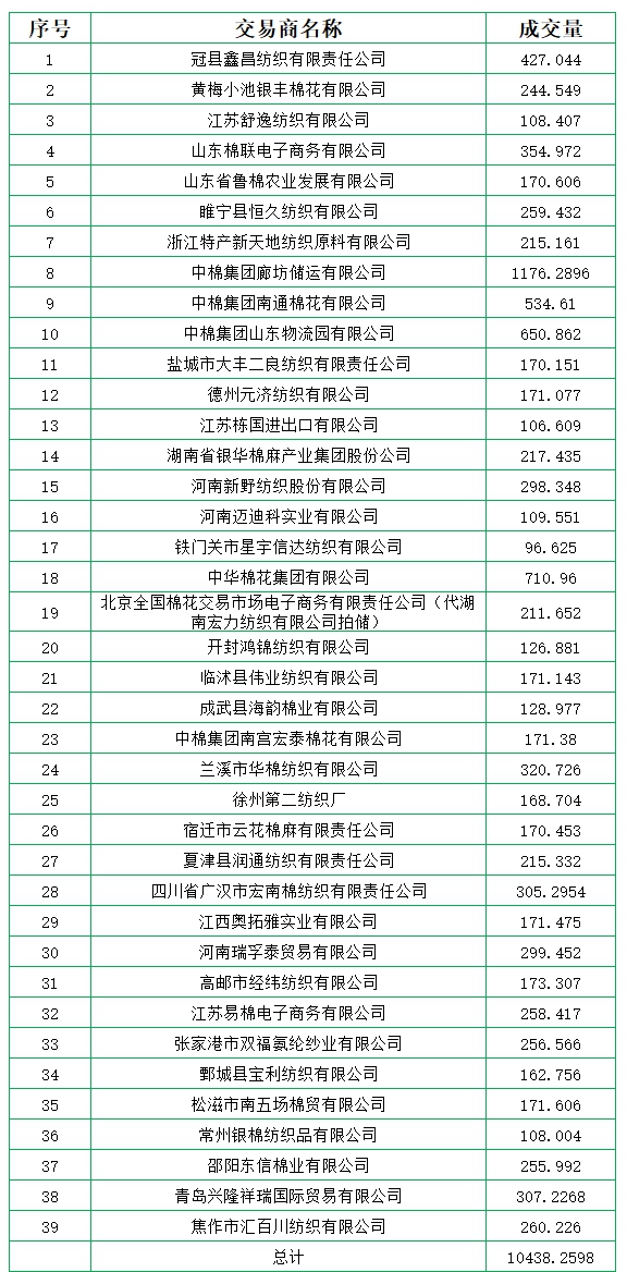 新疆棉成交均價(jià)11880元/噸,新疆棉折3128價(jià)格13099元/噸,新疆棉加價(jià)幅度420元/噸。