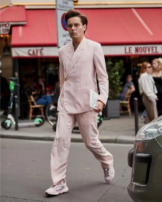 淡淡紛紛,有有點小清新的莫蘭迪粉亞麻,是20ss男時裝周T臺和街頭最醒目的色彩之一,迷離的灰度糅合了粉的甜膩,朦朧的薄霧色感融化人心,詮釋男裝浪漫主義。