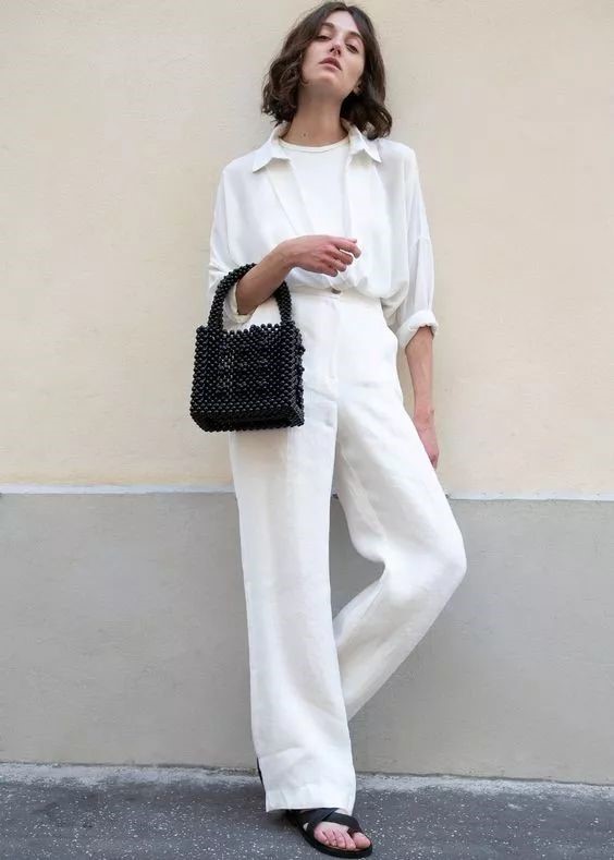 白色亞麻襯衫最經(jīng)典,配高腰闊腿褲、牛仔褲,無論是上班還是逛街都適合。